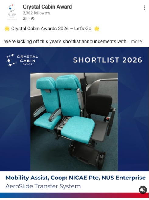 Mobility Assist Makes History as First Singapore-Based Team Shortlisted for Accessibility at Crystal Cabin Awards 2026